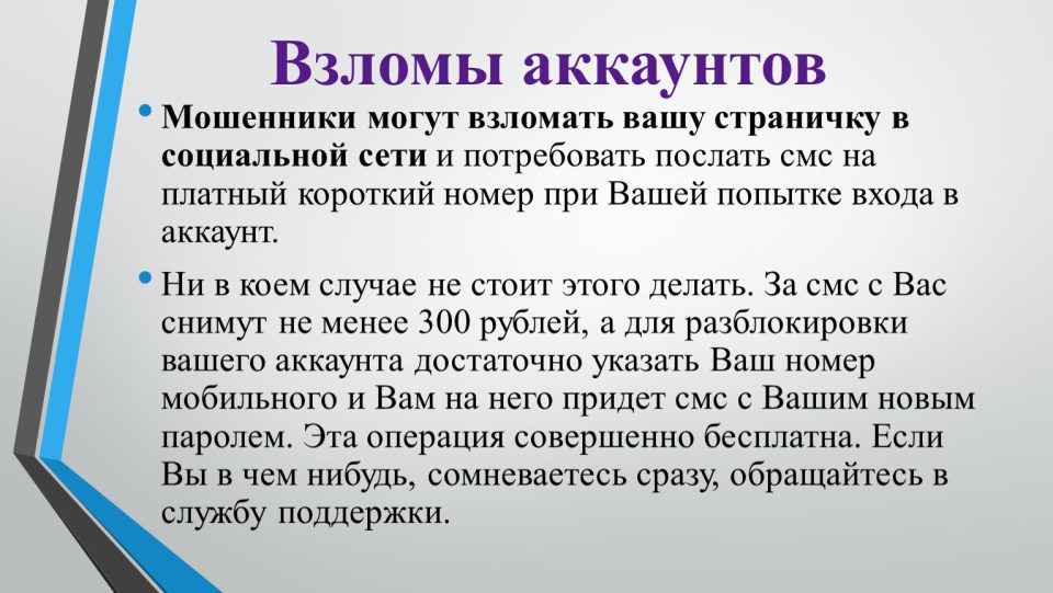 Если же доступ утерян или страница живёт своей жизнью, следует обратить внимание на признаки взлома: неизвестные активные сессии (раздел «Активные сессии» или «История входов» в мессенджерах и соцсетях), сообщения друзьям и посты, которые пользователь не писал, массовые подписки на интернет-сообщества с казино или криптовалютой, невозможность войти по старому паролю, смена привязанной почты, а также множество кодов подтверждения, которые не запрашивались хозяином аккаунта.